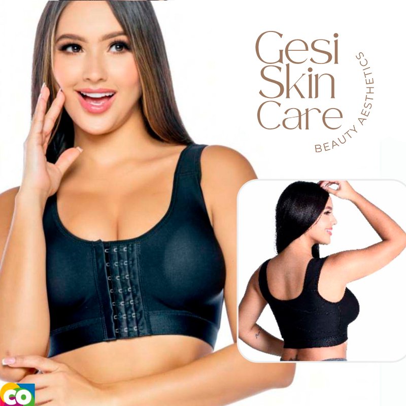Brasier postoperatorio con tirantes anchos y soporte firme. Diseño prehormado con broches de 3 hileras y tiras removibles que se ajustan a tus necesidades. Ideal para brindar comodidad y seguridad durante el uso diario o procesos de recuperación estética.